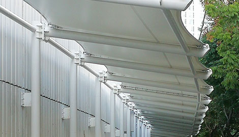 4.不可用刀子、锐器等刮划膜结构膜材表面,以免划破及损伤膜材表面。不可在膜结构膜面长时间堆积异物如:金属制品、化学物品或其它带色彩的物料等。