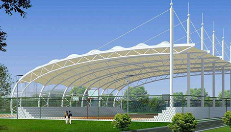 膜结构车棚的安装包括膜体展开、连接固定和张拉成形三个部分,所以在安装时,应在膜面上安设爬用安全网,作业人员必须系安全带...